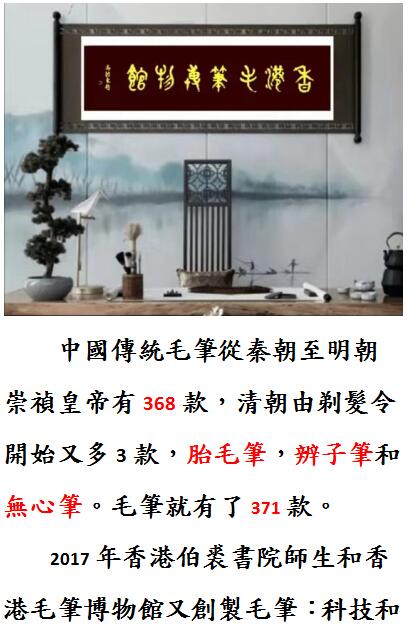 收藏371款毛筆,修復好,是一巨大工程;需要十年二十年或几代人才能收集齊全;我們通過[一人一筆一故事]慈善工程來完善這個夢想成真。 -----想了解更多